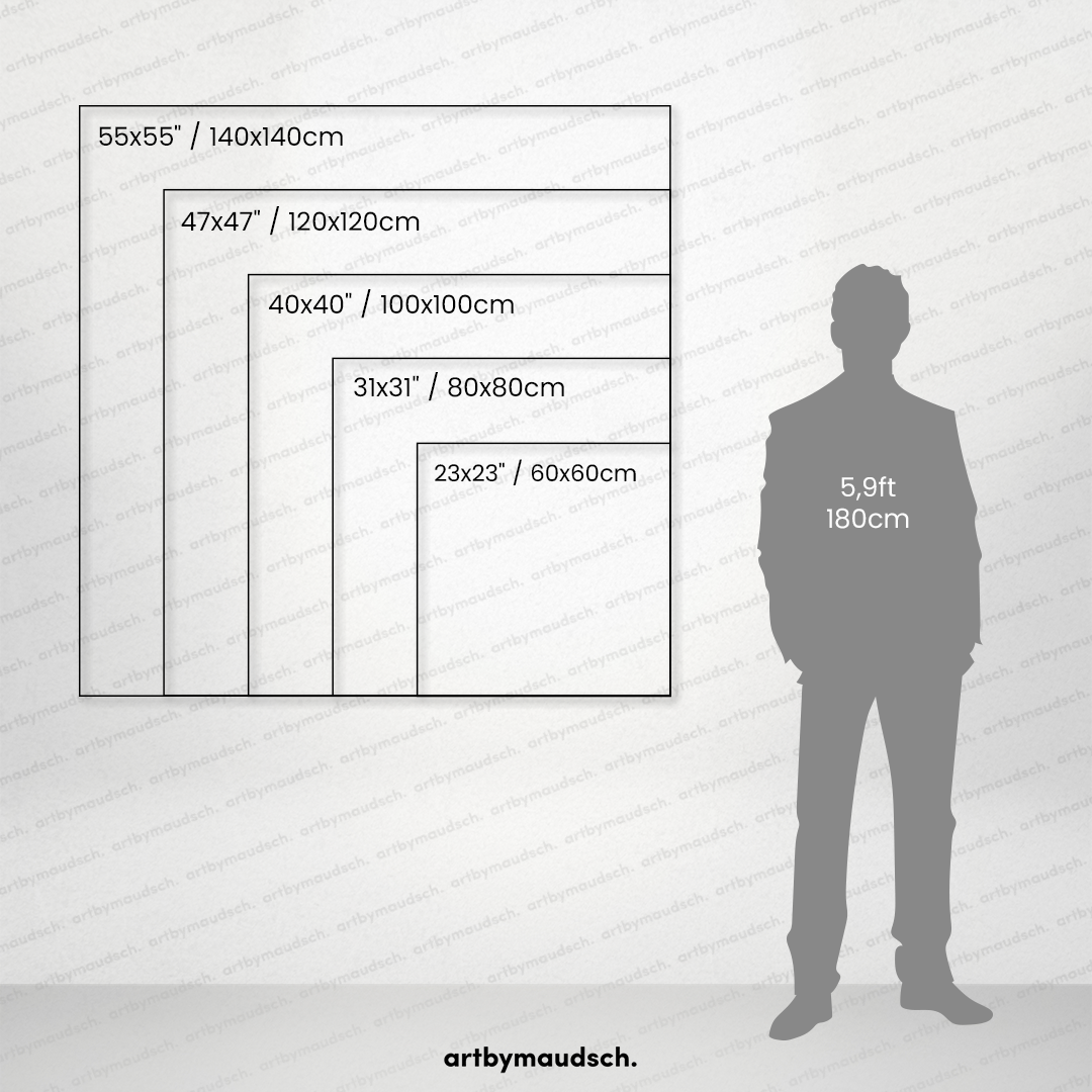 23x23" / 60x60cm, 31x31" / 80x80cm, 40x40" / 100x100cm, 47x47" / 120x120cm, 55x55" / 140x140cm, 63x63" / 160x160cm |