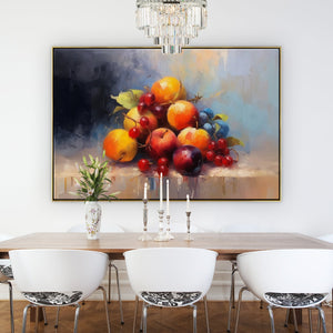Experience a palette of freshness in this modern still life. The artwork captures the vibrant colors and vitality of fruits, making it a lively and eye-catching addition to your surroundings.