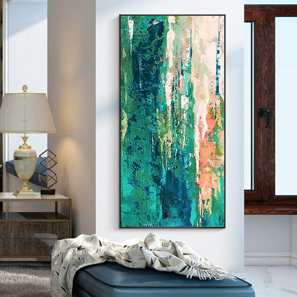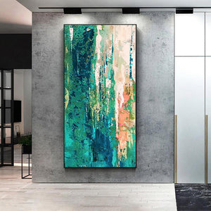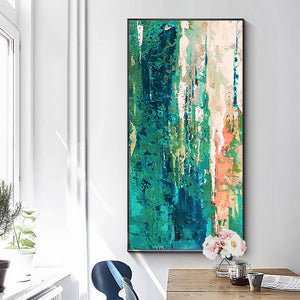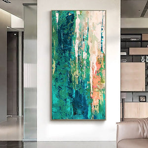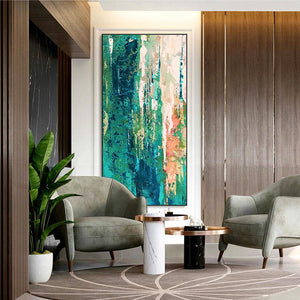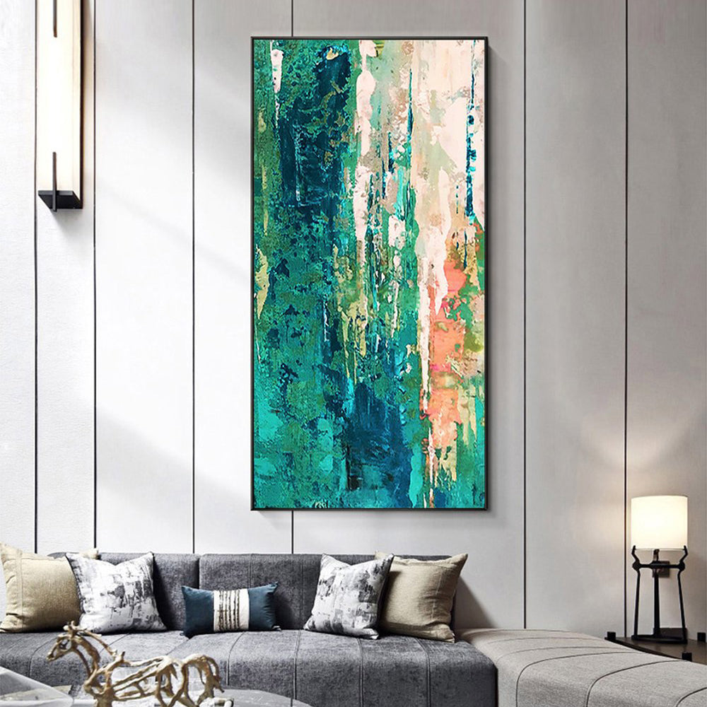 Add a little green to your home with this stunning handmade artwork. A natural, mossy atmosphere is created through the layering of different shades of green on top of each other. Making this piece a natural beauty!