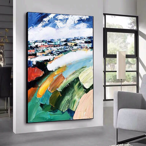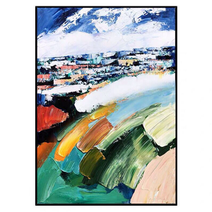 High upon the mountains, where the clouds touch the people’s hats, lies Nepal. This unique country is portrayed stunningly in this abstract artwork. The colors and shapes capture the Nepalese essence with great style.