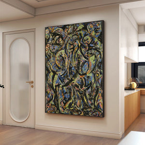 In the unique painting 'Noxus', a symphony of intricate patterns and lines create a dynamic and chaotic composition. Bursting with vibrant colors and formations, this artwork invites you to explore a world of captivating complexity and intriguing beauty.