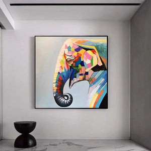 Meet 'Olympus' – a lively painting featuring a cheerful, rainbow-colored elephant. Experience the magic of nature and strength blending seamlessly in this joyful and vivid art piece.