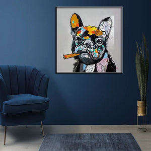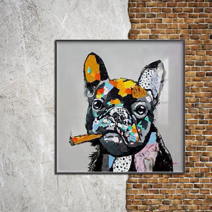Introducing Oscar the Pug - the coolest pup in the art world, puffing on his cigar and stealing hearts with his charm. His colorful specks and adorable little eyes make this piece a cozy and welcoming addition to any space or room!