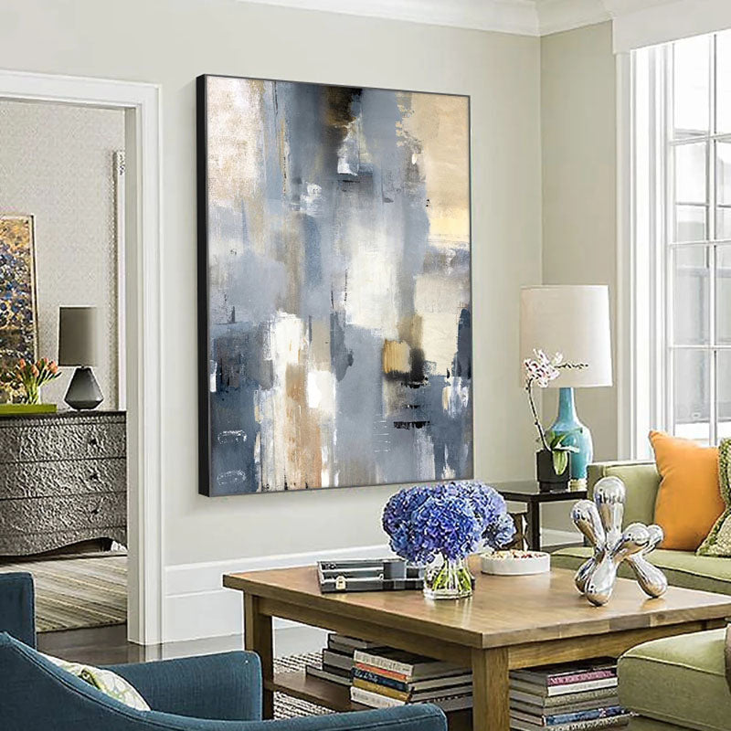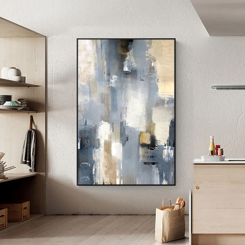 Dive into the subtle colors of this abstract modern artwork just like real porpoises. Its mystic composition leaves a lot to the imagination while creating a soothing atmosphere. Also, its soft colors work together beautifully with its surroundings.