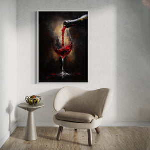 Pouring Red is a striking tribute to the elegance (and deliciousness) of wine. The deep red colors and dramatic contrasts create a painting that is both bold and refined, making it a stunning addition to your living or dining space.