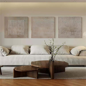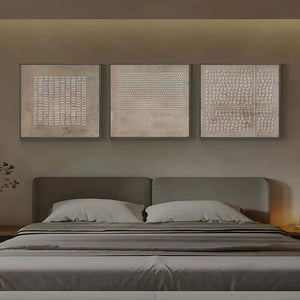 Experience true Relief with this trio of textured elegance. Each panel tells its own story through intricate patterns, adding depth and dimension to your space. Perfect for those who appreciate subtlety and sophistication in their home interior.
