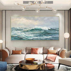 Through this dynamic composition, the artist wants to draw attention to the rising sea levels. The warming of the earth and the melting of the polar ice is a dangerous development that can impact us all. With these beautiful, powerful waves the artist simultaneously displays the might of mother nature, and the dangers she brings with her.