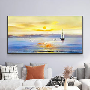 Embark on a beautiful journey with 'Sailing to the Sunset'. Let this enchanting painting take you on a journey into serenity, where the colors of a tranquil evening sky meet the horizon.