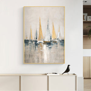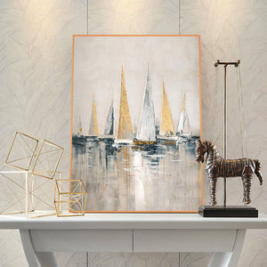 What is better than sailing alone? Right! Sailing with friends! This beautiful impressionistic art piece displays friendly sailors on open water. Together they sail to the horizon, what an amazing sight!