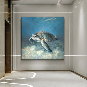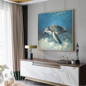 Meet Sally the Sea Turtle, the star of this stunning painting. Graceful and lifelike, she glides through tranquil waters, bringing the calm beauty of the ocean to your home. Sally is the perfect companion for creating a peaceful and captivating atmosphere anywhere!