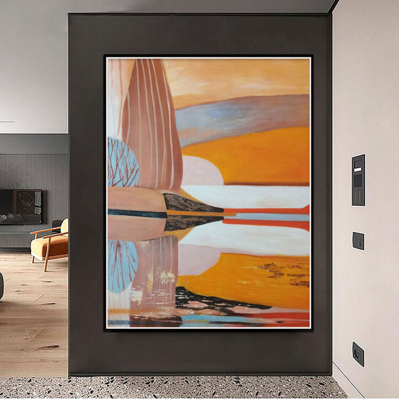 With a unique and distinct style, this abstract art piece 'Sandy' is part of an eccentric new collection. This beautiful piece characterizes itself with an almost symmetric composition and a unique color scheme!