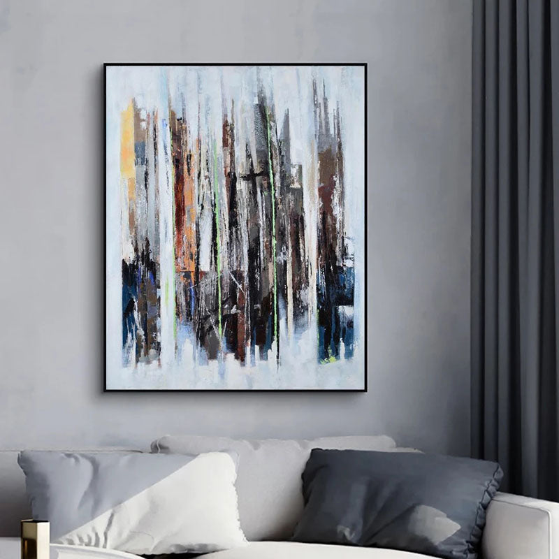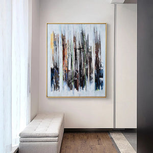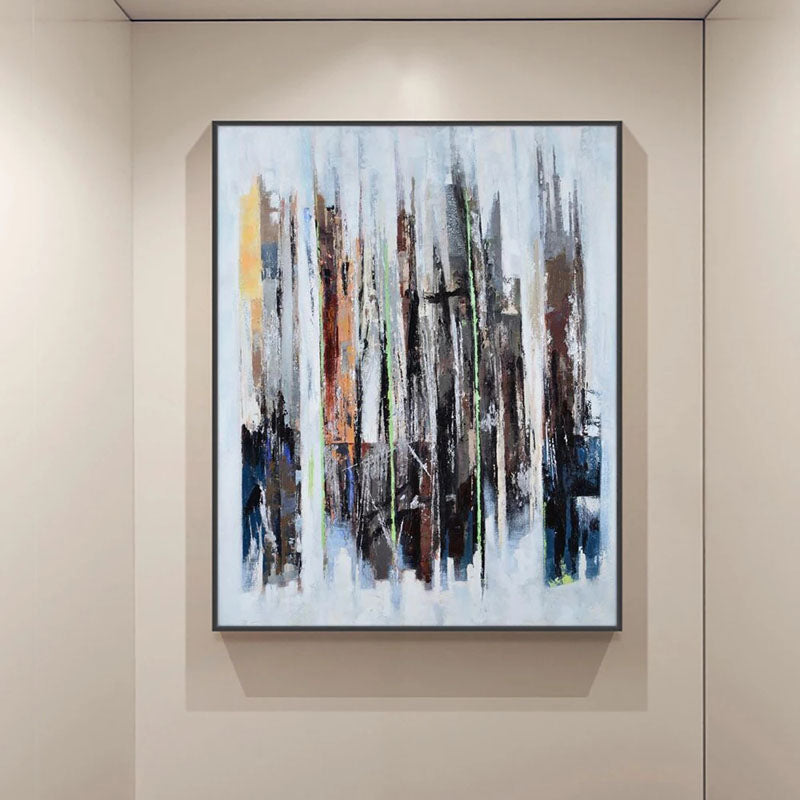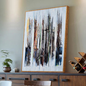 This unique composition truly bursts out of its canvas! With a scratch-like way of painting and a touch of mysterious elegance, this intriguing piece will astound you, time and time again!