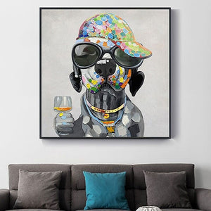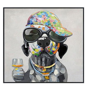 Meet Spencer, the suave pup who knows how to sip in style! From his cool sunglasses to his playful painted details, this artwork is all about character. Spencer is ready to jazz up your walls with a modern twist that’s full of personality and charm.