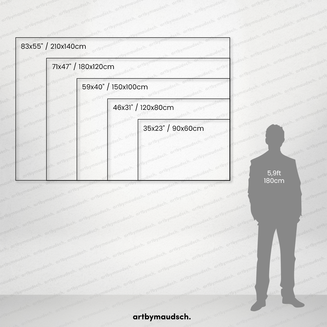 35x23" / 90x60cm, 46x31" / 120x80cm, 59x40" / 150x100cm, 71x47" / 180x120cm, 83x55" / 210x140cm |