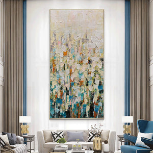 This magnificent art piece just puts a smile on our faces! The multiple, thick-layered colours make for a flowery carnival of colours! Get a taste of spring with this cheerful handmade original!