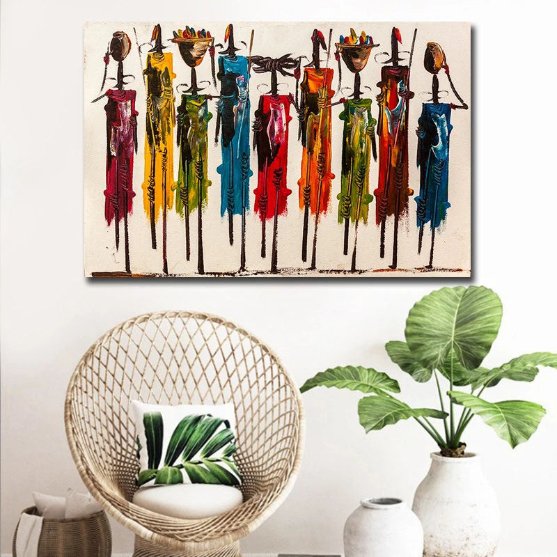 Life’s a dance, and this painting proves it. With bold splashes of color and unique figures, this piece captures the joy of movement and celebration. It’s a playful addition to any home, perfect for creating conversations and smiles.