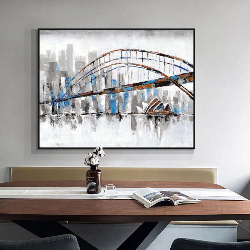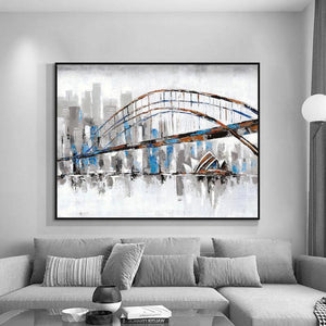 Inspired by the beautiful Australian city of Sydney, this piece is a sure eye-catcher! ! The colors are bright and vibrant, making it pop right out. You'll love how much this painting adds to the overall aesthetic of your space!