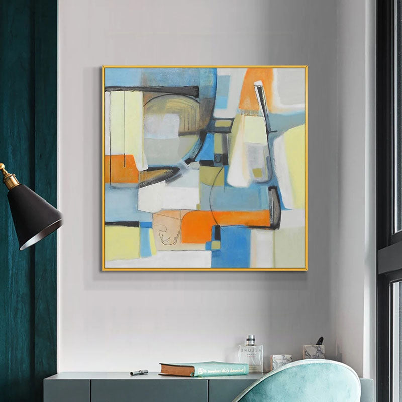 Teamwork comes alive in this dynamic abstract painting. With intersecting shapes and harmonious colors, it perfectly captures collaboration and synergy. This piece is ideal for inspiring productivity in a workspace or adding balance to your home. Let the art remind you that great things happen when pieces come together.