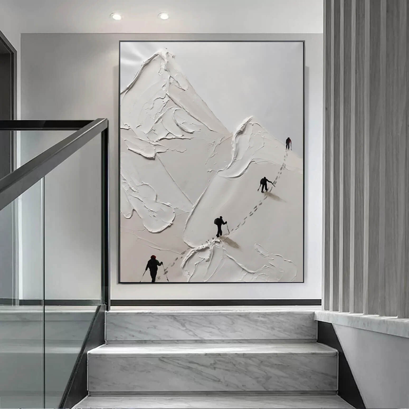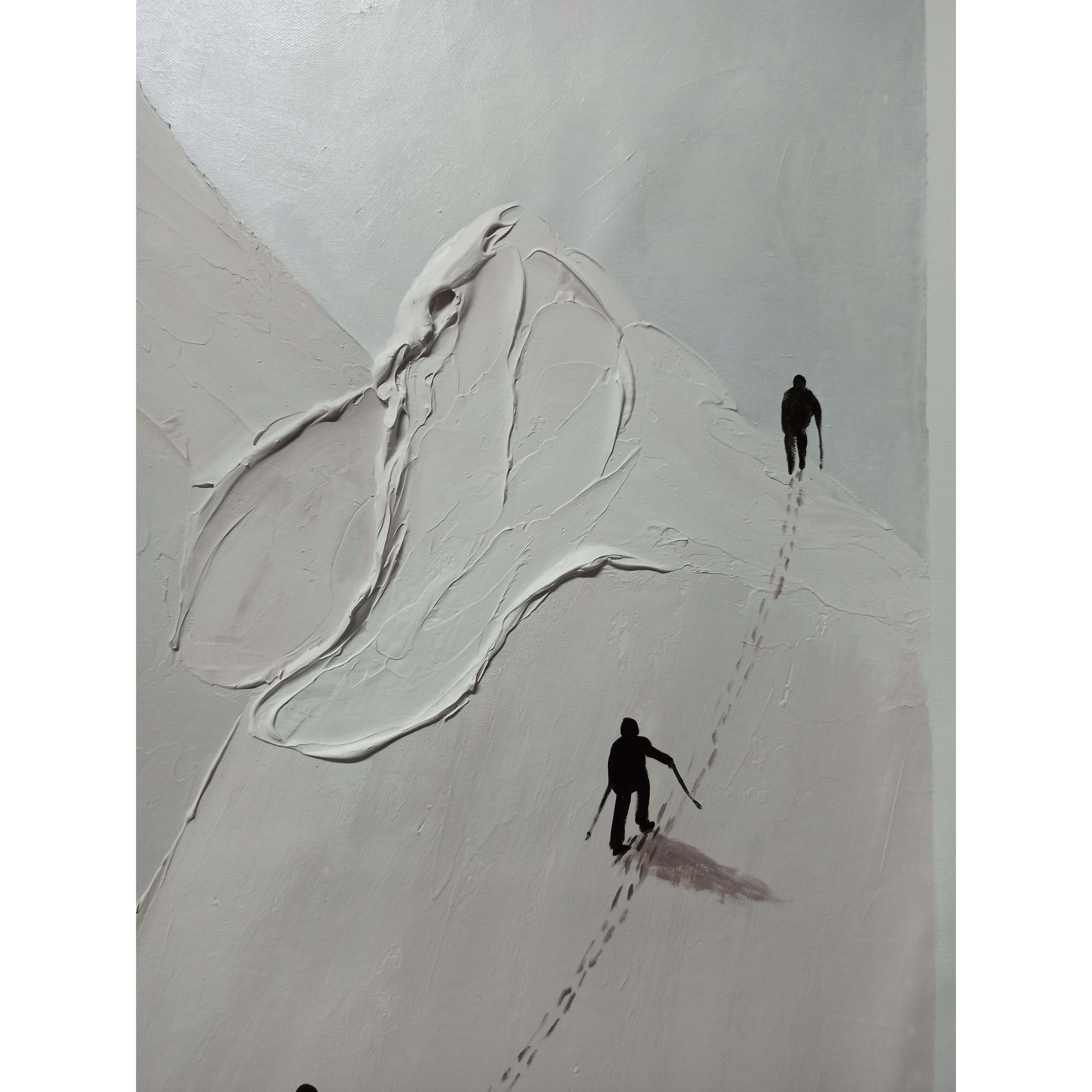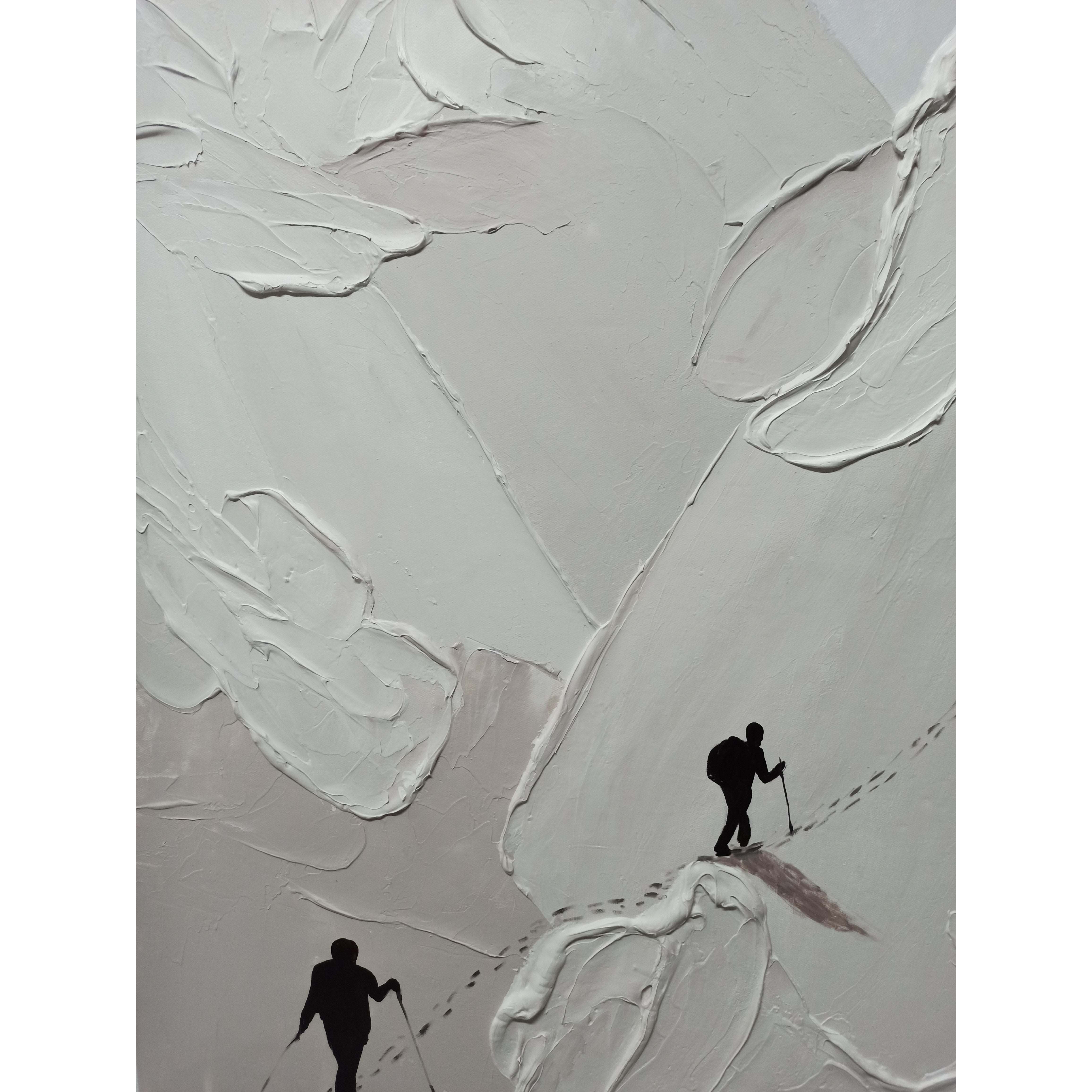 Look at these brave hikers conquering a massive mountain! This special artwork displays the journey of a lifetime in a unique style. The different painting styles used in this composition, make the hikers truly come alive. Making this painting a rich addition to any space or room!