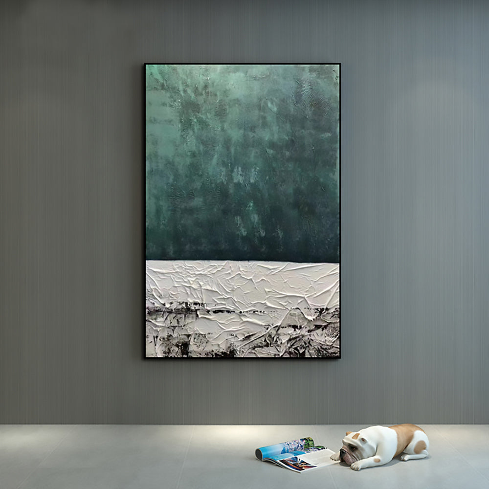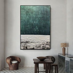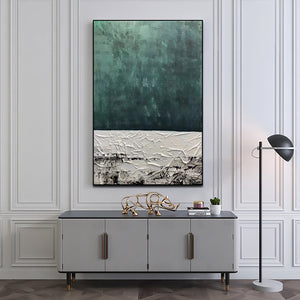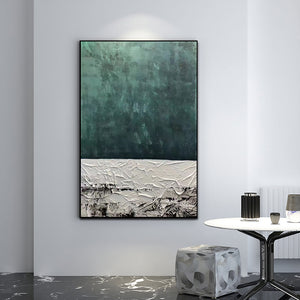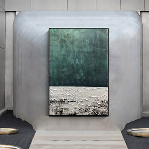 Step into 'The Dark Night' and let its mesmerizing textures and deep green colors lead you through the darkness. This painting captures the mystery of twilight, blending subtle movement and bold contrasts. It's perfect for anyone looking to bring intrigue and elegance into their space.