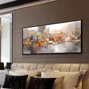 The 'The evolving City' is a mesmerizing view of a city skyline. The dense highrises create an almost overwhelming feeling, as if you're right there in the city itself. The brown color palette gives it a rustic and aged feel.