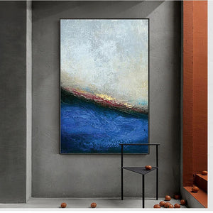 The Kraken captures the mysterious depths of the ocean with its stunning blue hues and textured waves. This abstract masterpiece adds an element of intrigue and elegance to any room, enhancing it with its captivating presence.