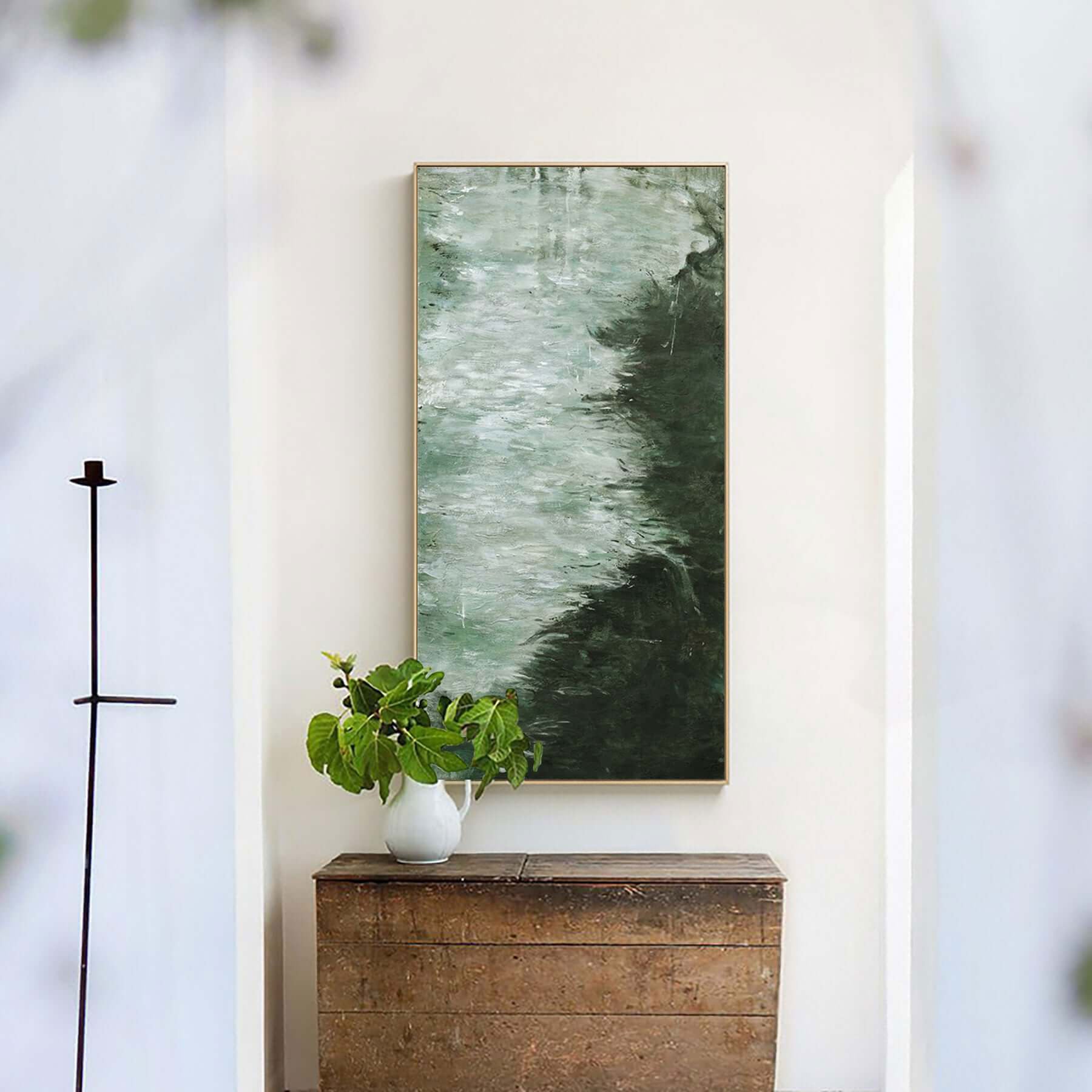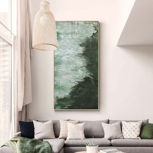 This mysterious, mossy path will lead you to great beauty. The deep, dark green colors contrast beautifully with the lighter tones, creating a stunning composition. It is a interesting and mystique addition to any home interior!