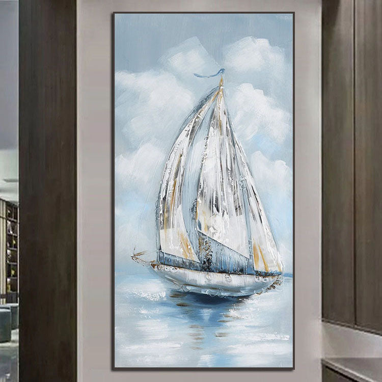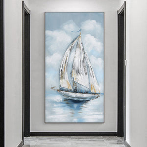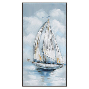 This realism painting surely is one to remember! 'The Proud Skipper' displays a stunning sailing ship, ready to roam the wild waters! With beautiful subtle colors and a comforting, soft composition, this piece will proudly shine on any empty wall!