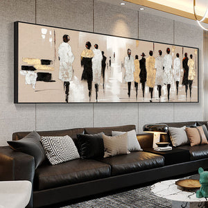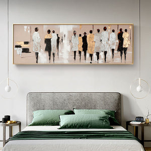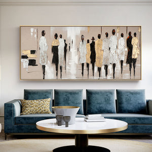 Step into the elegance of 'The Royal Gala.' This stunning painting captures a scene of refinement and beauty, with figures dressed in flowing white and gold. It's a celebration of movement, style, and grace that will bring timeless sophistication to your home.