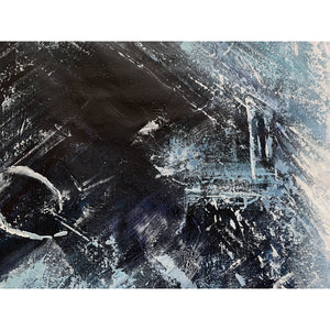 A mysterious wave washes ashore, where movement meets stillness and where fluid meets solid. Through thick layers of white paint, the artist created a hyper-realistic beach foam. Its many different shades of blue give the tide beautiful movement and realistic depth.