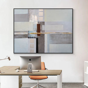Lose yourself in Trance, a modern abstract that feels like visual poetry. Its gentle blend of textures and metallic touches evokes depth and reflection. A perfect balance of minimalism and mystery.