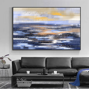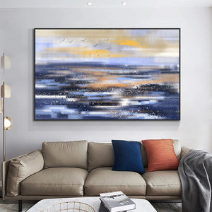 Let this amazing modern art piece take you to higher places! With the use of various special techniques, an abstract seawater surface is created, that is simultaneously inviting and utterly beautiful! Making this large artwork suited for many different home interiors!