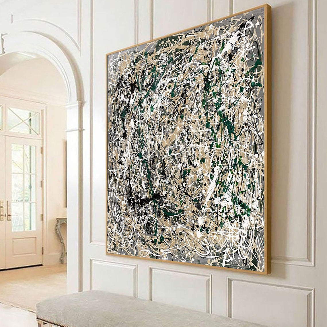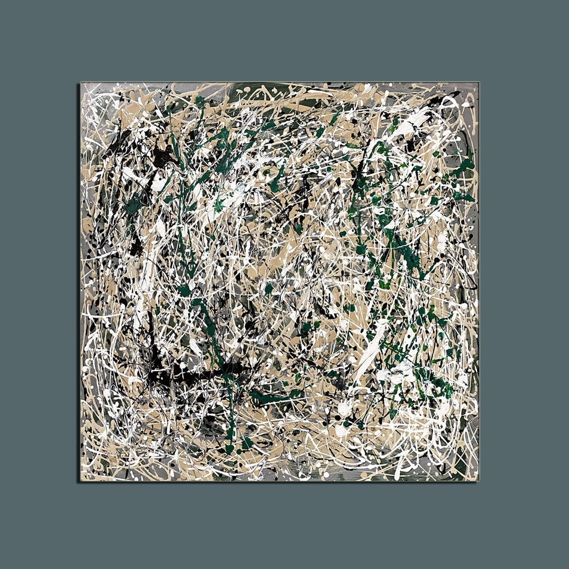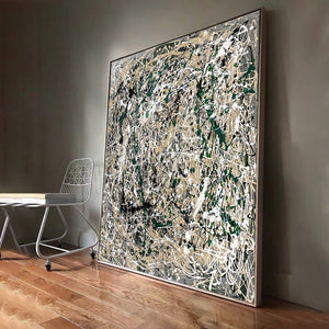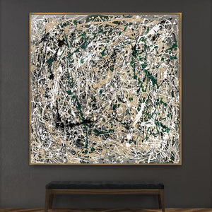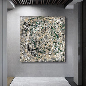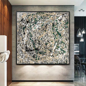 In Pollock's inspired 'Vanquished' is a dance of chaos and order, where earthy tones and bold strokes emerge victorious over the blank canvas. This abstract piece brings life and energy to any modern space.