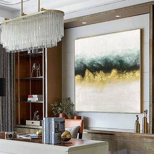An astonishing whirling mass of paint! This artwork has blown us away with its majestic power. It whirls you in, deeper and deeper... And, somewhere, between the turquoise and golden strokes, something is happening within the darkness!