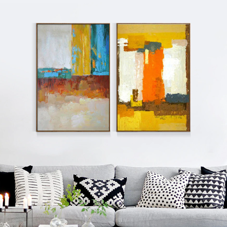 This steaming canvas set is an eruption of colors! With the ambiance of a volcano, these duo paintings are sure to heat up any type of home interior.