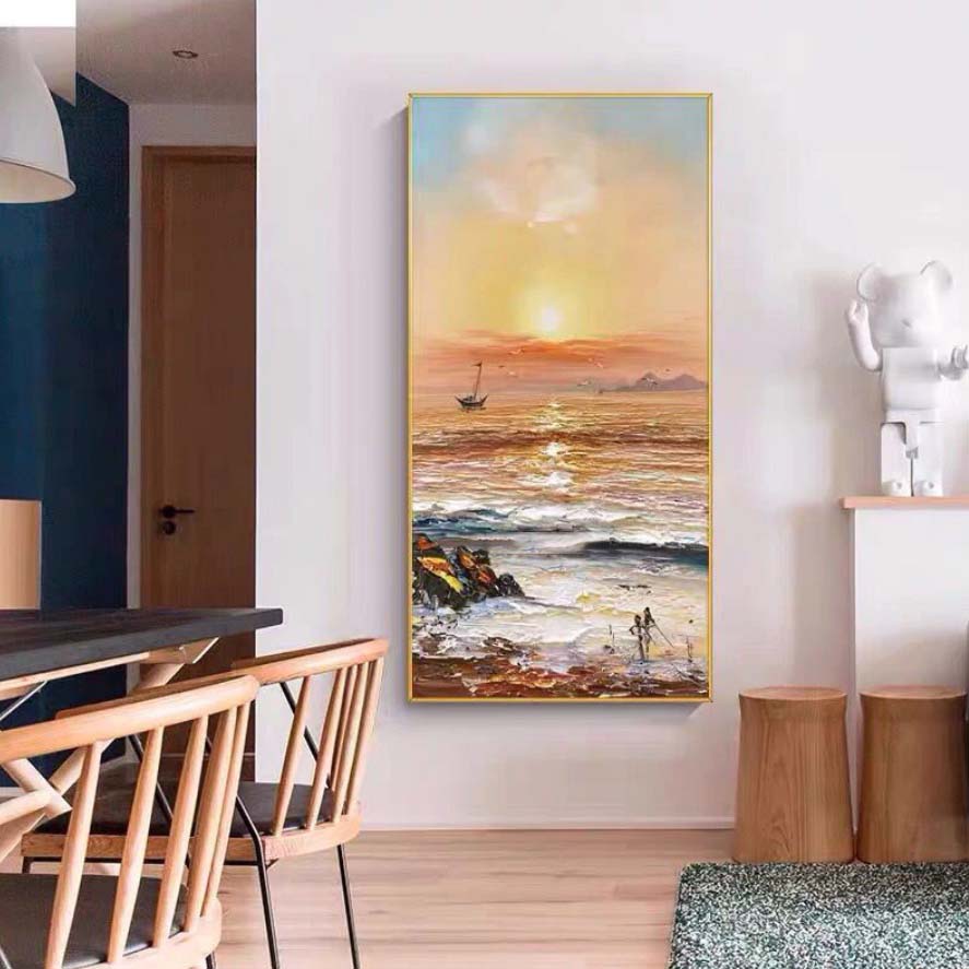 Wander the ocean like never before with this fantastic realism painting. With gorgeous details, you can almost hear the waves crashing ashore. The beautiful colors blend in naturally with their surroundings, creating a wonderful atmosphere.
