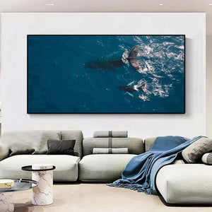 Wandering Whales is a celebration of freedom and grace. This stunning artwork captures the beauty of these majestic creatures exploring the endless ocean, creating a serene and captivating centerpiece."
