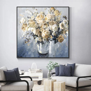 For the most beautiful day of your life, you need the most beautiful flowers! This elegant bouquet of white roses is portrayed stunningly, capturing the purity, innocence, and charm of a newlywed couple! Its pleasant colors makes this piece suited for any home interior!