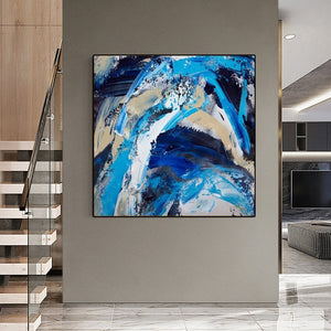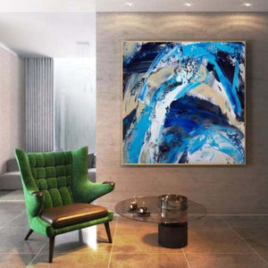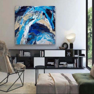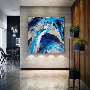 Dive into the depths of this painting’s swirling chaos, where bold blues and whites collide in a mesmerizing dance. It’s an ideal piece for those who appreciate the raw power and intensity of nature, brought to life on canvas.