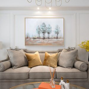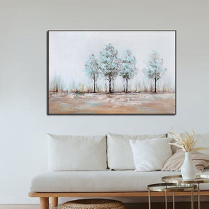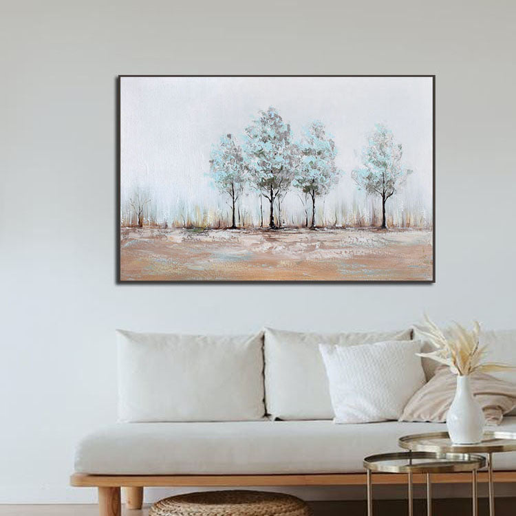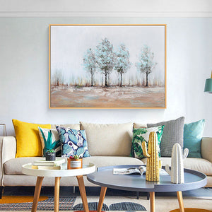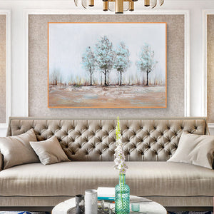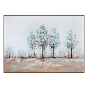 These strong, beautiful trees were able to withstand the harsh winter colds. Proud and tall they now stand in the 'Winter's Backyard', waiting for spring to arrive again. This stunning artwork shows the power of nature with a melancholic composition.