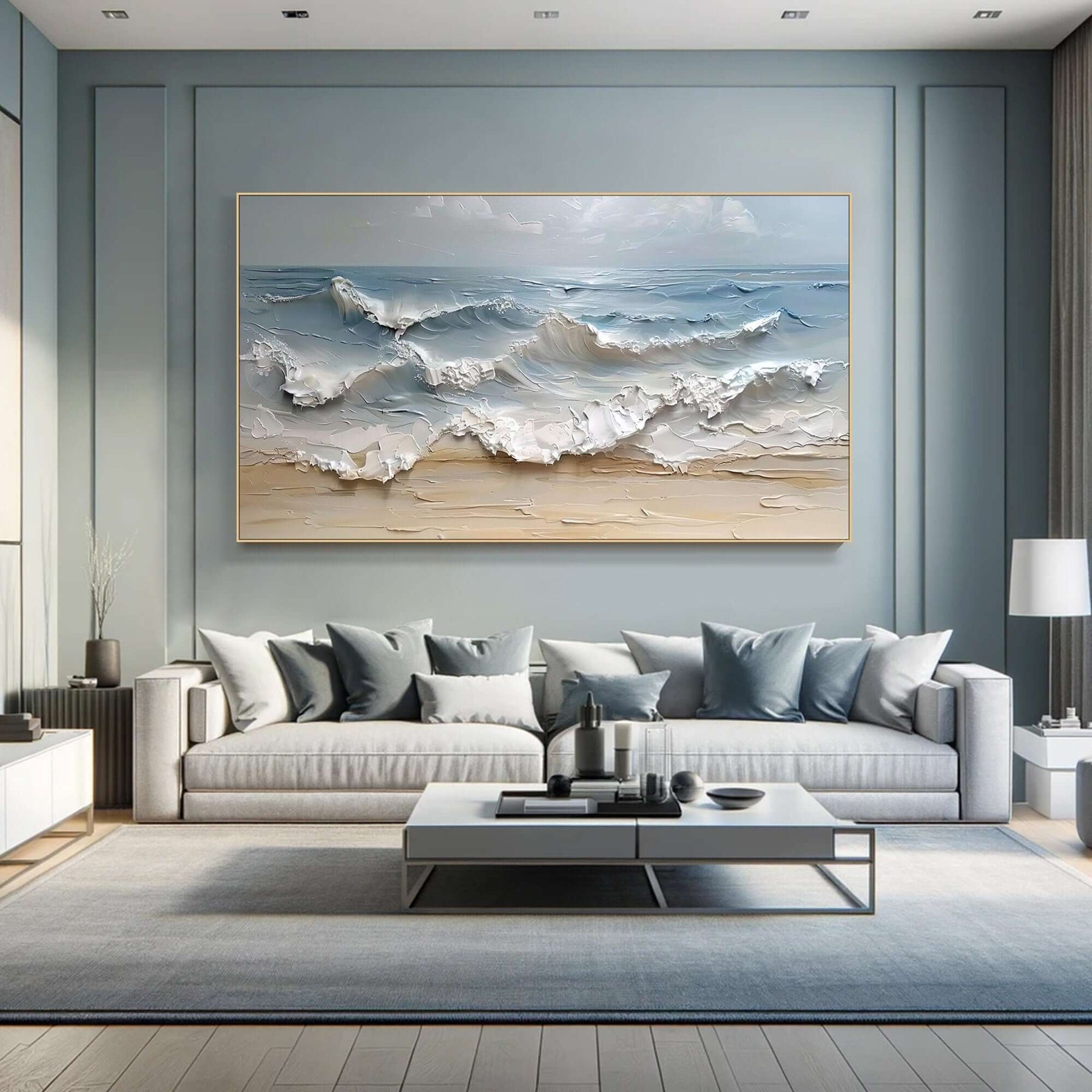 Shoreline Impasto – 3D Wave Hand-Painted Oil Painting