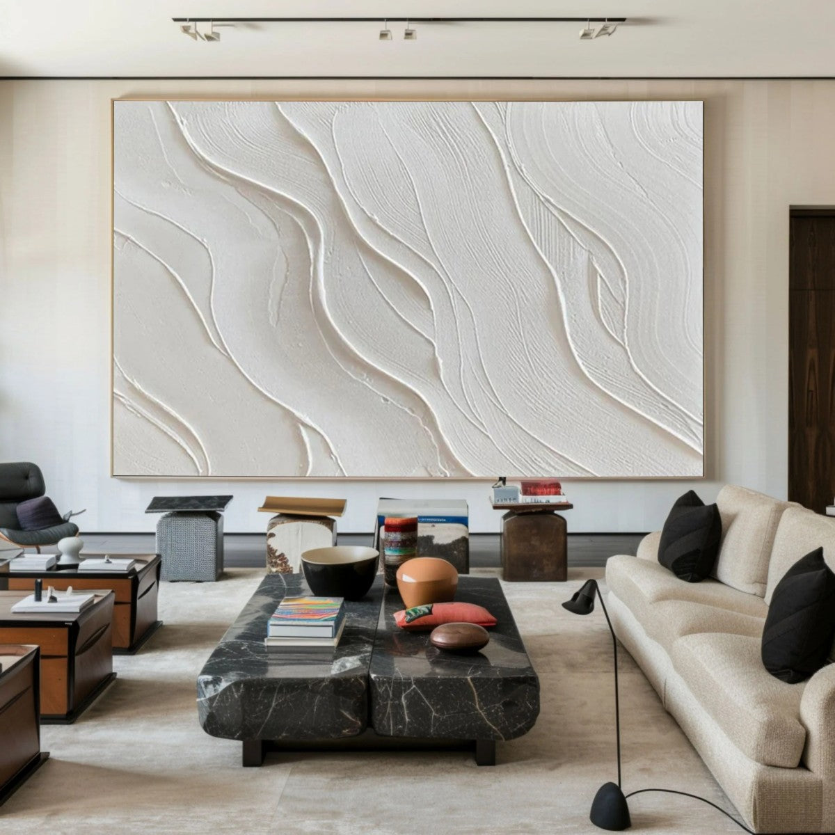 This serene 100% Pure Hand-Painted Original Oil Painting embraces Wabi-Sabi aesthetics through sculptural texture. The cascading, pure white lines, rendered in the Rivulet Impasto technique, evoke the gentle movement of a Chalk Stream. This guaranteed Hand-Painted Oil Painting provides peaceful sophistication, perfect for a dining room or minimalist space.
